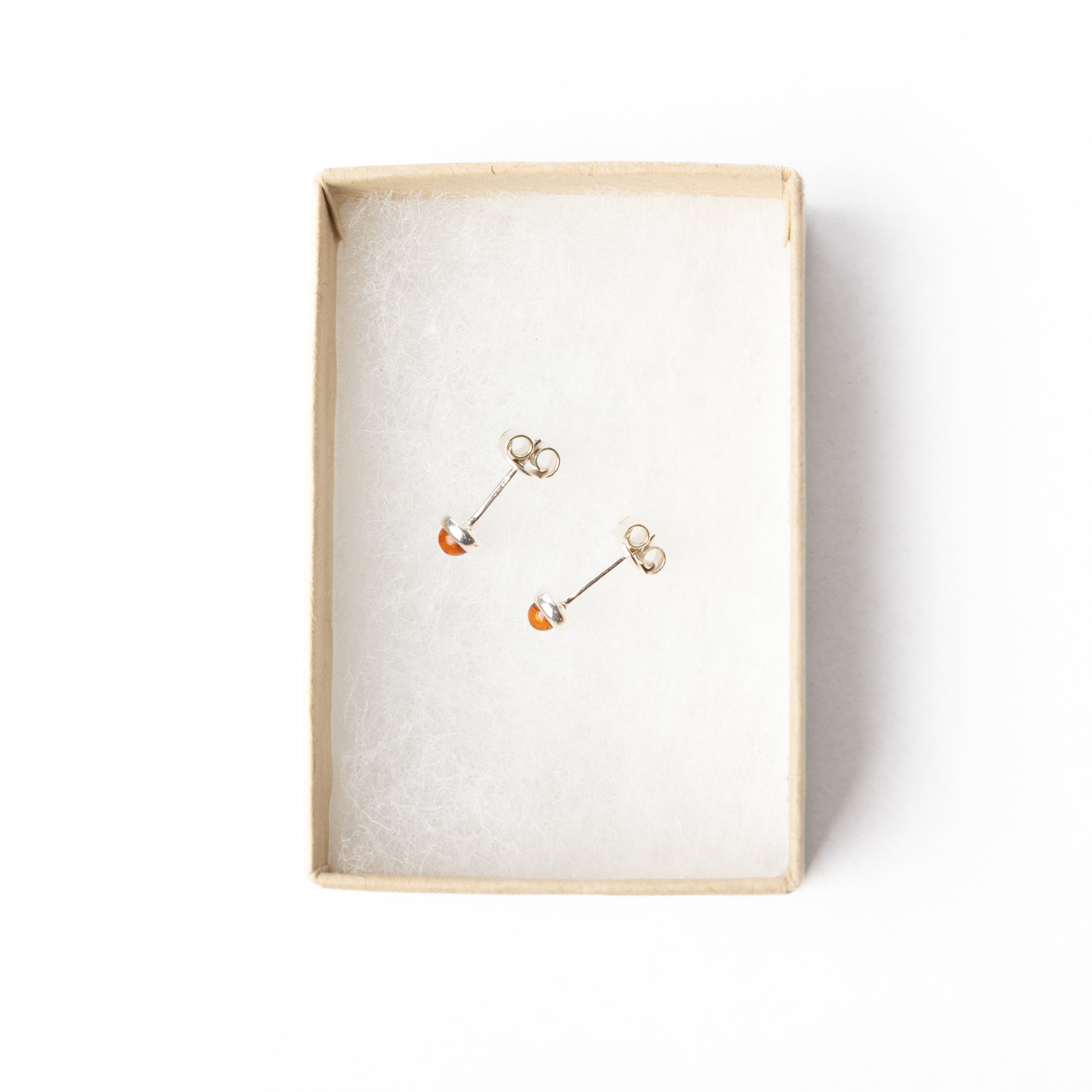 A pair amber studs set in sterling silver. The amber is sourced in Lithuania and the earrings set in Poland.