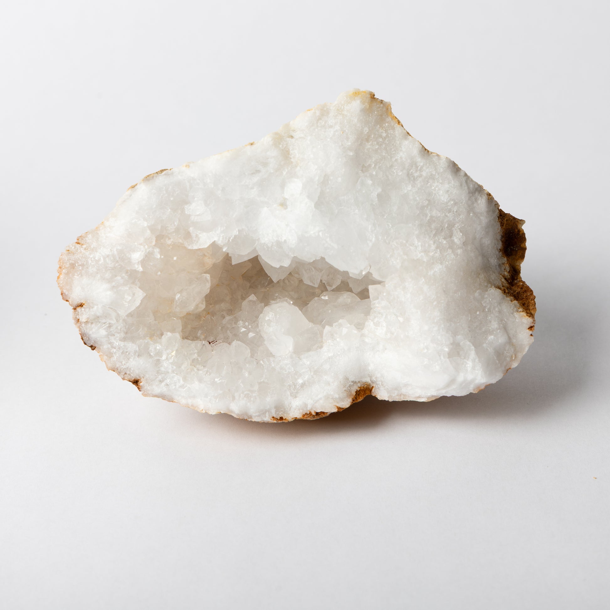 A naturally formed Snow Quartz geode with bright white crystals and a clean, sparkling interior. Each piece offers unique texture and calming, frosty beauty - perfect for collectors, décor, or crystal enthusiasts seeking a soothing, uplifting addition to their space.