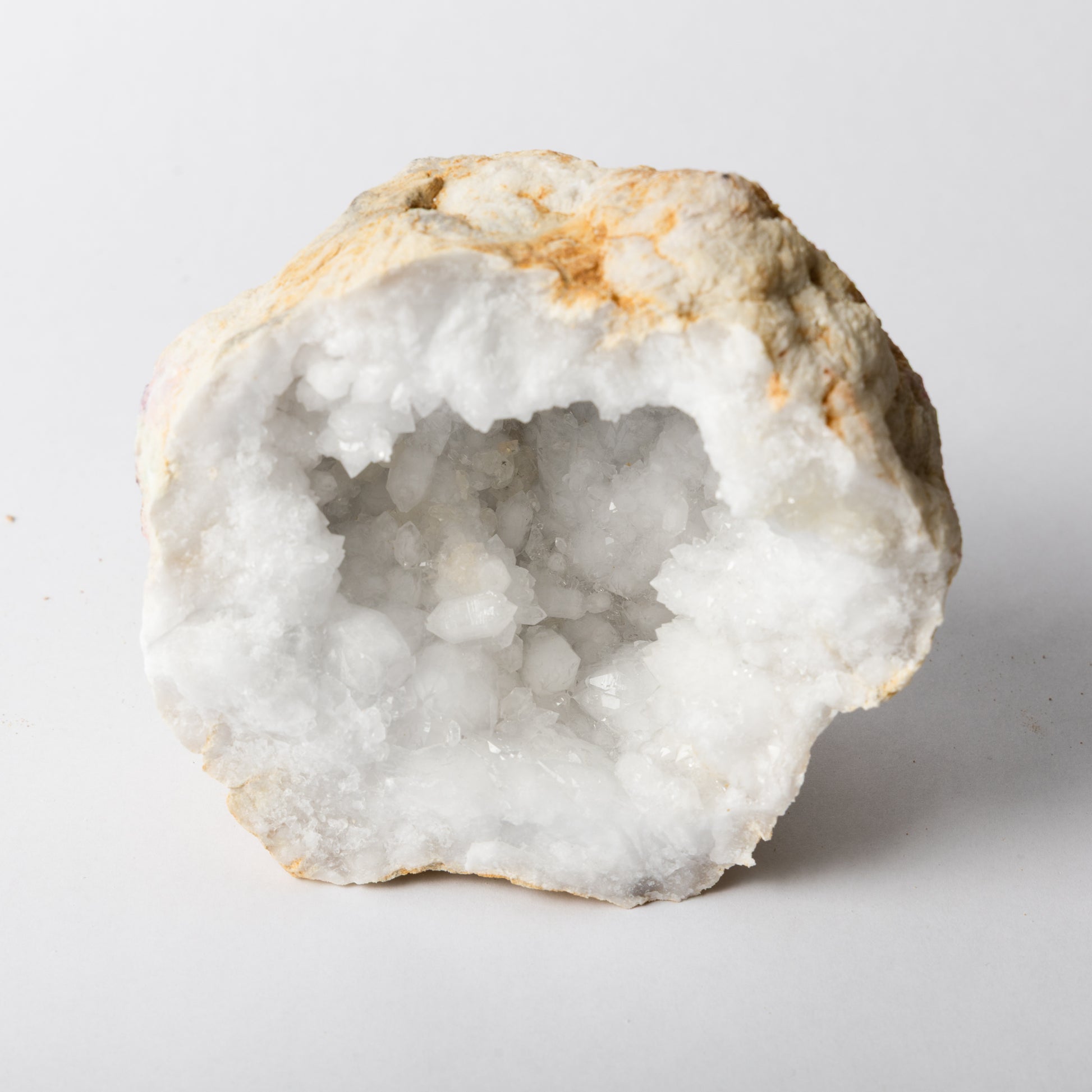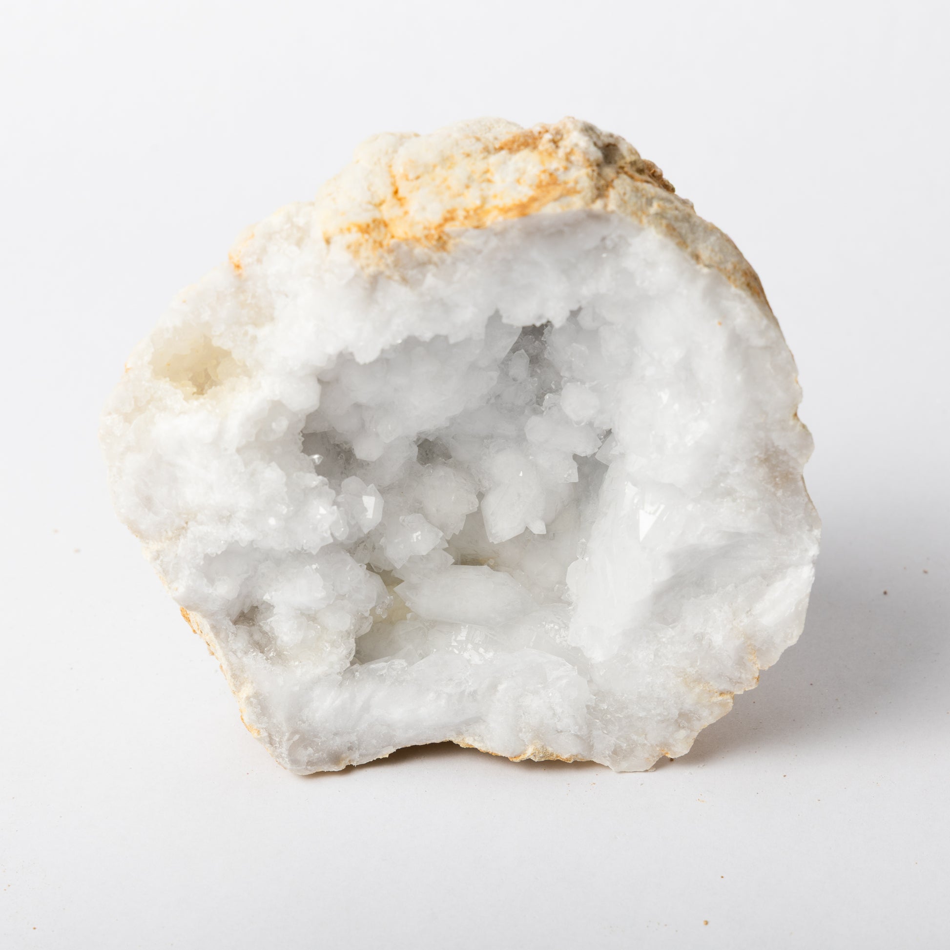A naturally formed Snow Quartz geode with bright white crystals and a clean, sparkling interior. Each piece offers unique texture and calming, frosty beauty - perfect for collectors, décor, or crystal enthusiasts seeking a soothing, uplifting addition to their space.