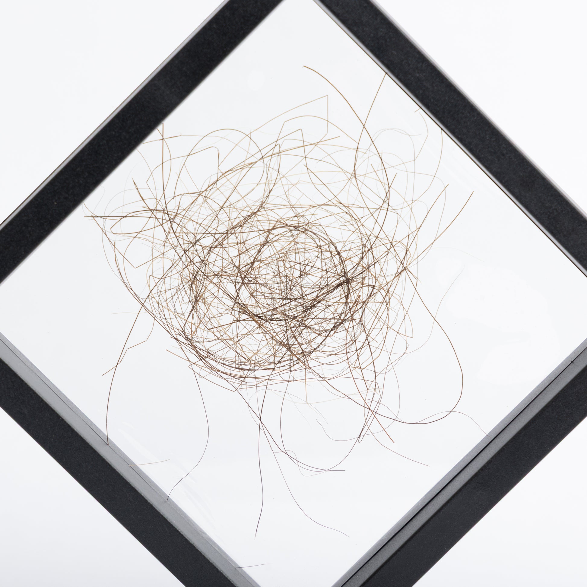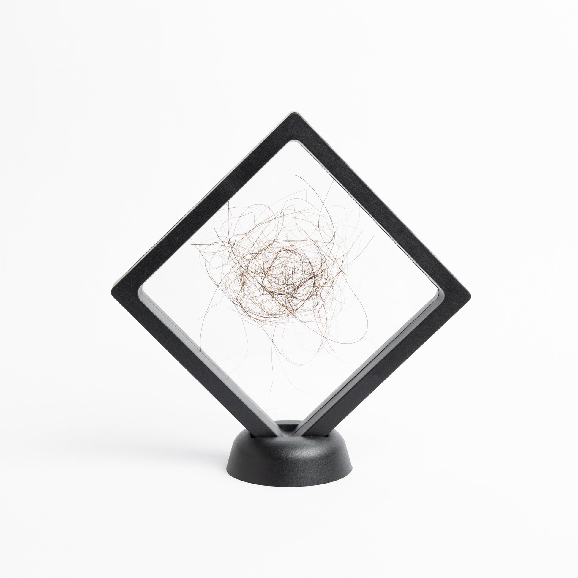A sample of Mammuthus primigenius (Woolly Mammoth) hair encapsulated in a floating 3D frame