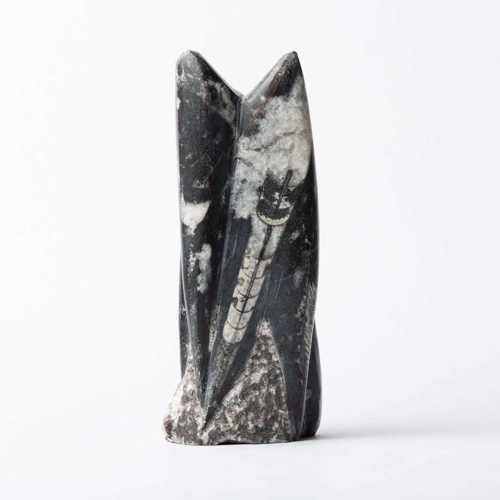 A tower of nautiloid cephalopod (squid/cuttlefish type) fossils. Cut and polished into striking shapes.