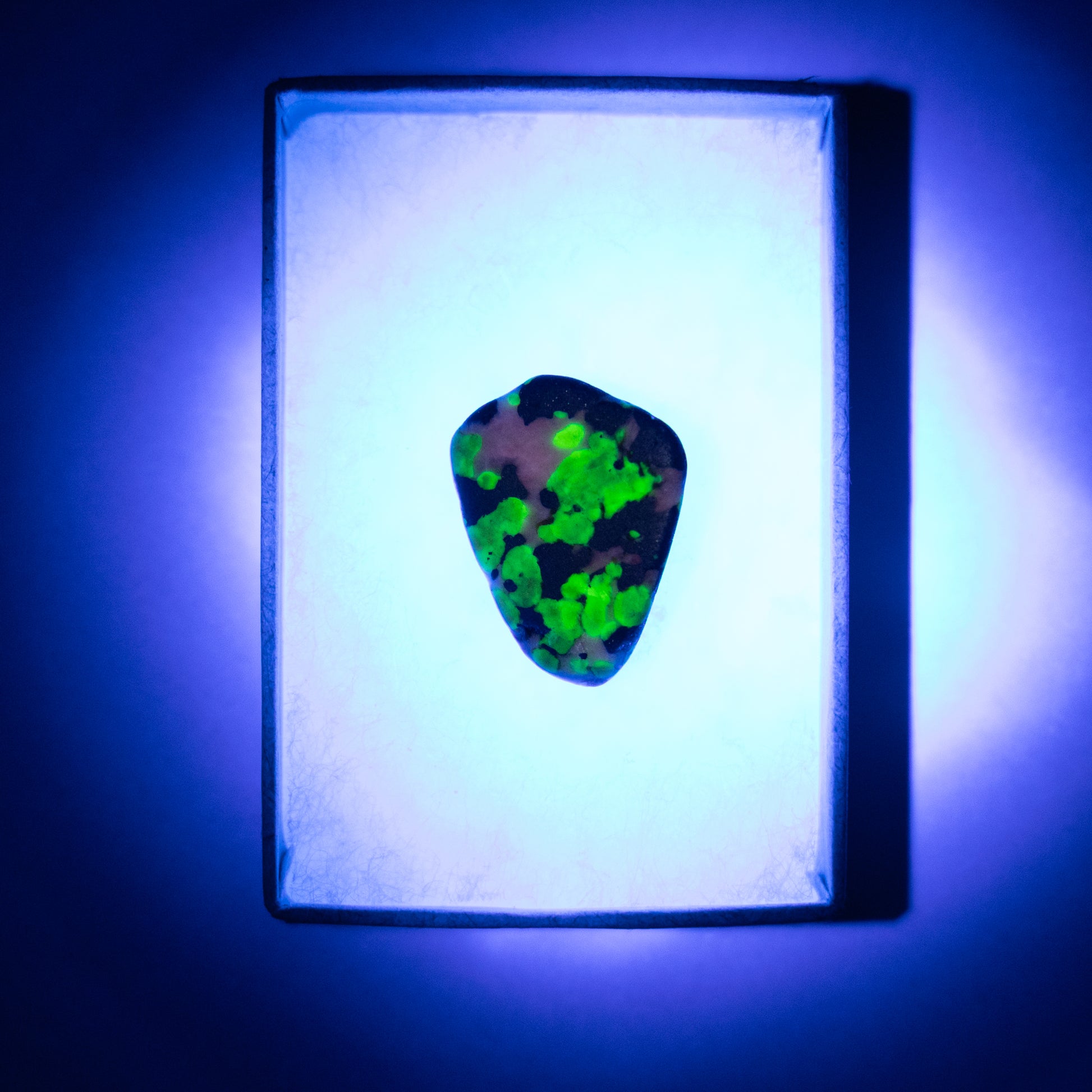 These carefully selected willemite specimens from Namibia exhibit a vivid neon-green fluorescence under ultraviolet light, offering a striking transformation from their dark natural matrix.